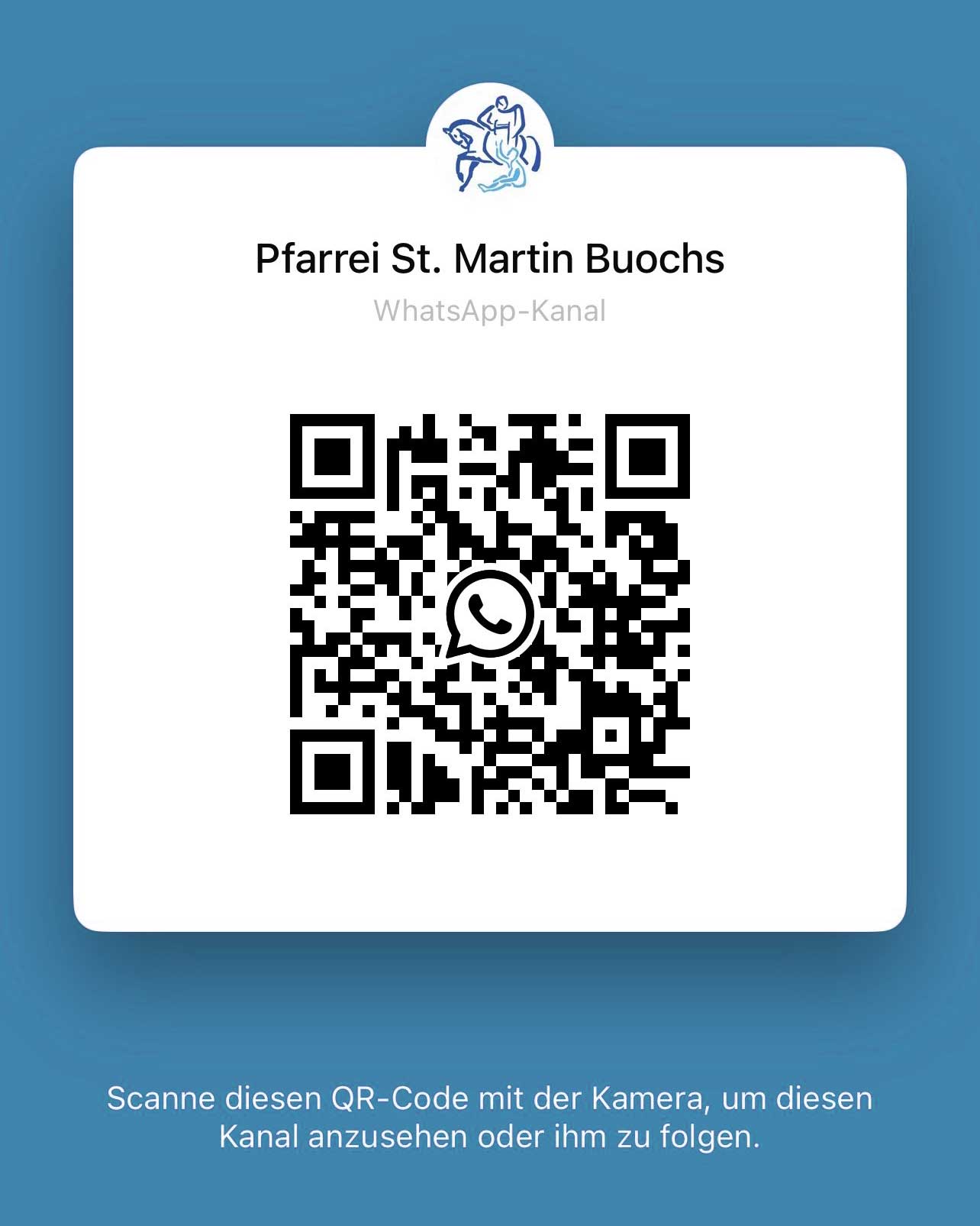 Auf unserem WhatsApp-Kanal „Pfarrei St. Martin Buochs“ finden Sie Angaben und Neuigkeiten zu unseren Gottesdiensten und Veranstaltungen. Herzlich willkommen!